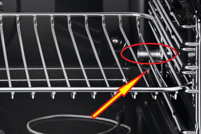 - Wanneer het rooster of de bakplaat in de onderste stand de stoomuitlaat aan de rechter achterzijde raakt, dan zal de deur niet goed gesloten zijn en kan er stoom ontsnappen via de deur of er kan lekkage ontstaan.