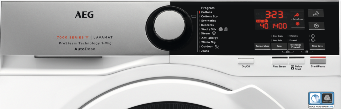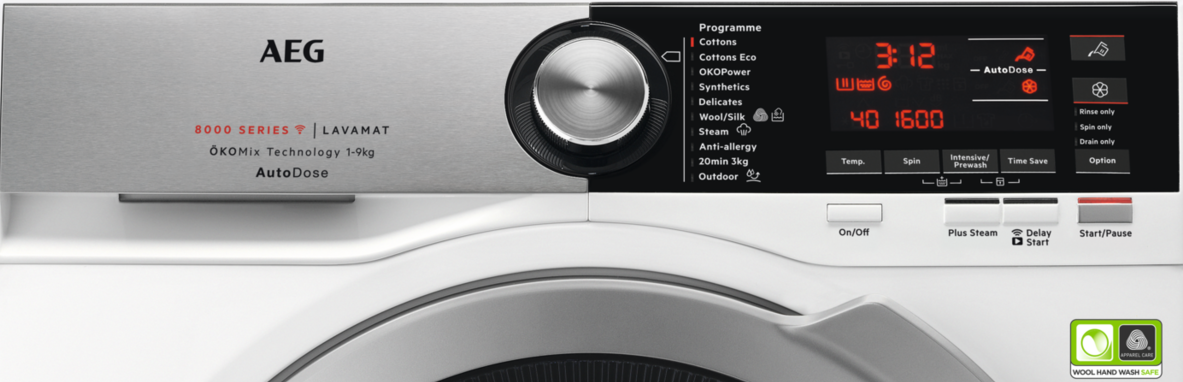 - Instellen hoeveelheid wasmiddel en wasverzachter per wasbeurt AEG AutoDose wasmachine.