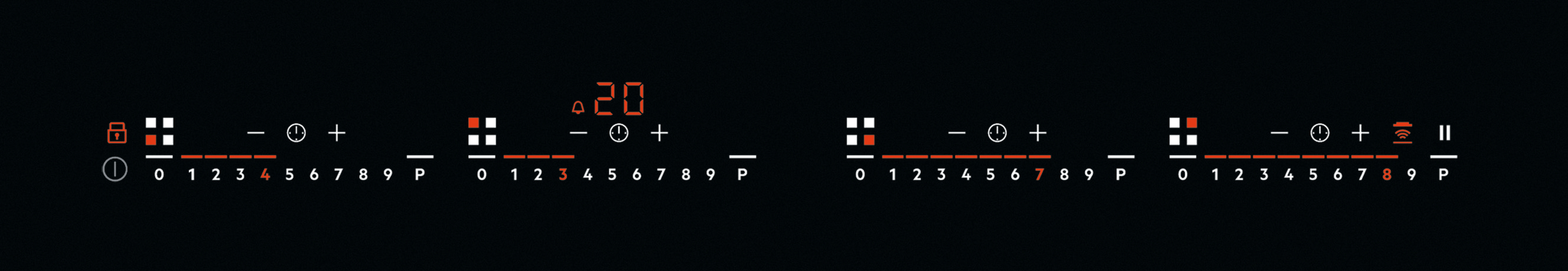 - Bij sommige modellen inductiekookplaten dient er een pan op de zone te worden gezet om de kookplaat aan te kunnen zetten. Wanneer een inductie kookplaat een bedieningspaneel heeft zoals hier onder afgebeeld staat, zal er een pan op de zone moeten staan om de inductiekookplaat aan te kunnen zetten en het bedieningspaneel op te laten lichten.